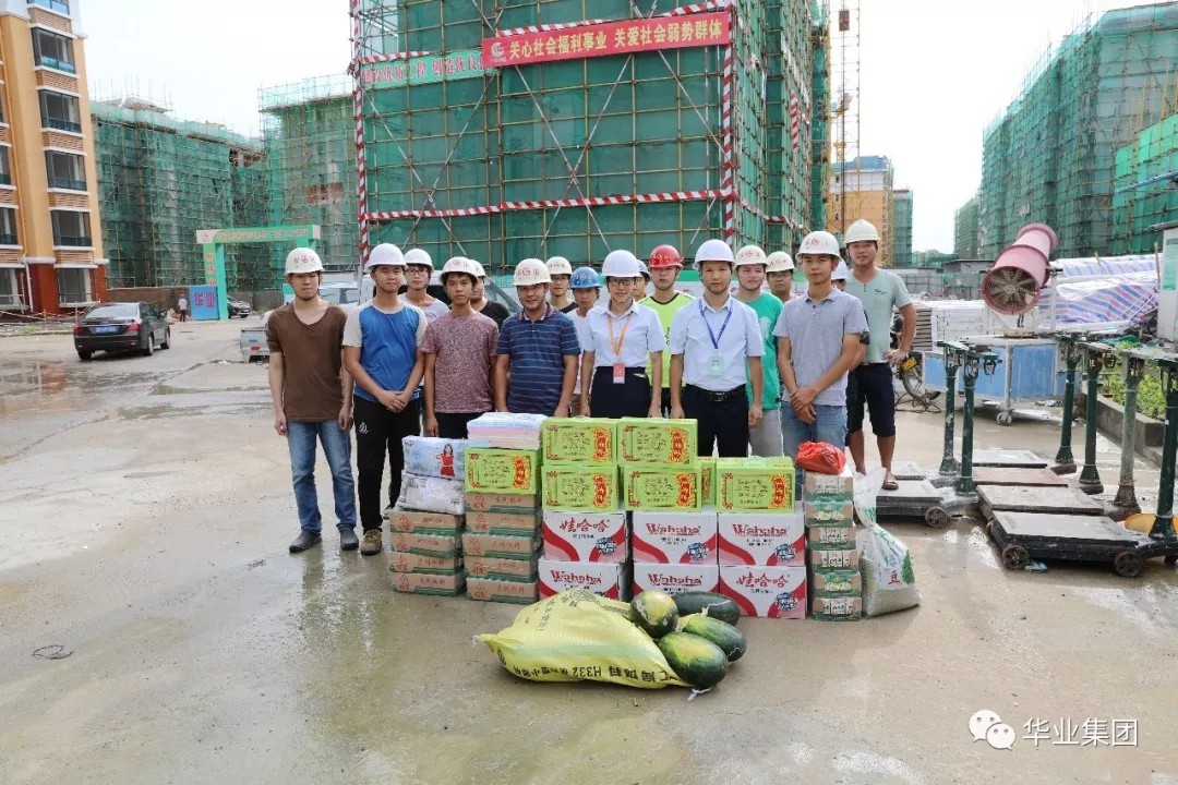 華業(yè)集團(tuán)夏日送清涼活動產(chǎn)生了良好的社會影響,防城區(qū)總工會聞悉消息后,當(dāng)即決定雙方聯(lián)合組織開展更多的深入工地送清涼活動,讓更多的在烈日下辛勤工作的工人朋友們得到關(guān)心、愛護(hù)和鼓舞。2018年8月7日下午,防城區(qū)總工會符皓副主席帶領(lǐng)工會干部與華業(yè)集團(tuán)工會鐘麗霞主席一行頂著烈日的熏烤,驅(qū)車前往白龍海邊防碼頭為漁光小鎮(zhèn)項(xiàng)目施工作業(yè)工人送清涼用品,并親切地慰問了工人朋友們,給予深切的關(guān)懷和鼓舞。