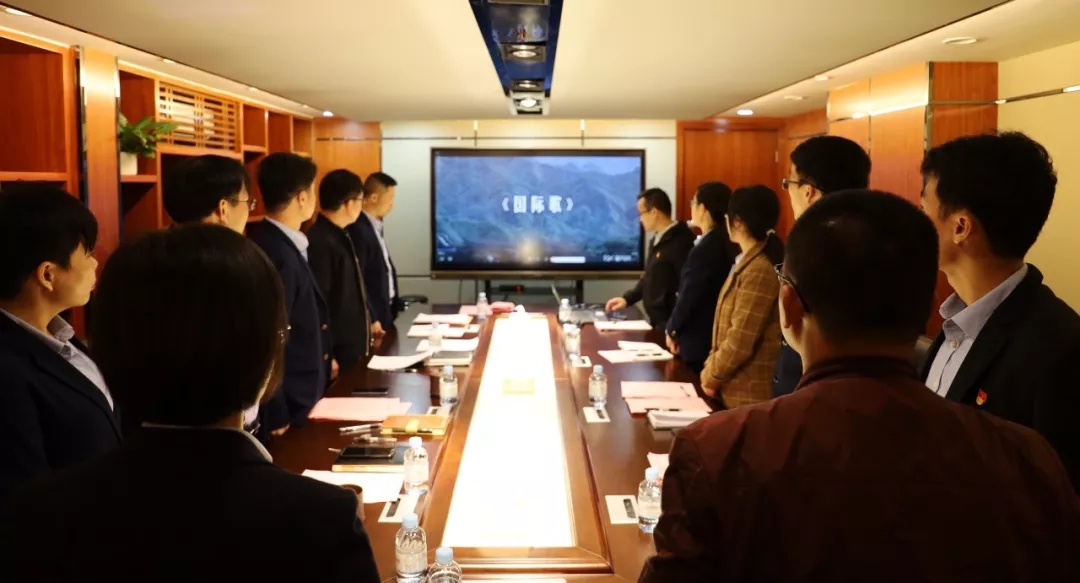 與會(huì)全體黨員起立奏唱《中華人民共和國國歌》
