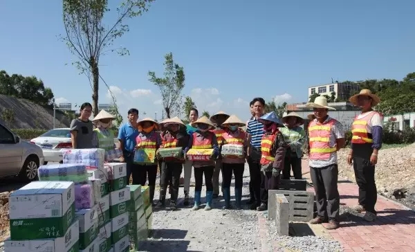 防城港的夏天持續(xù)高溫,熱氣襲人,但為了保證施工進(jìn)度,公司項(xiàng)目部員工不畏困難,戰(zhàn)高溫、斗酷暑,依舊堅(jiān)守崗位。頂著高溫奮斗在一線(xiàn)崗位的員工牽動(dòng)著公司領(lǐng)導(dǎo)的心,7月25日下午,在防城區(qū)總工會(huì)的支持下,受集團(tuán)公司龍其偉總裁和龍其生董事長(zhǎng)的委托,集團(tuán)副總裁唐光源、工會(huì)主席鐘麗霞、副總經(jīng)理龐樹(shù)玉一行前往防城港市東灣綠化工程施工現(xiàn)場(chǎng)看望奮戰(zhàn)在高溫一線(xiàn)的項(xiàng)目部員工,為他們送去了夏季防暑物品,為員工們帶來(lái)了絲絲“清涼”。