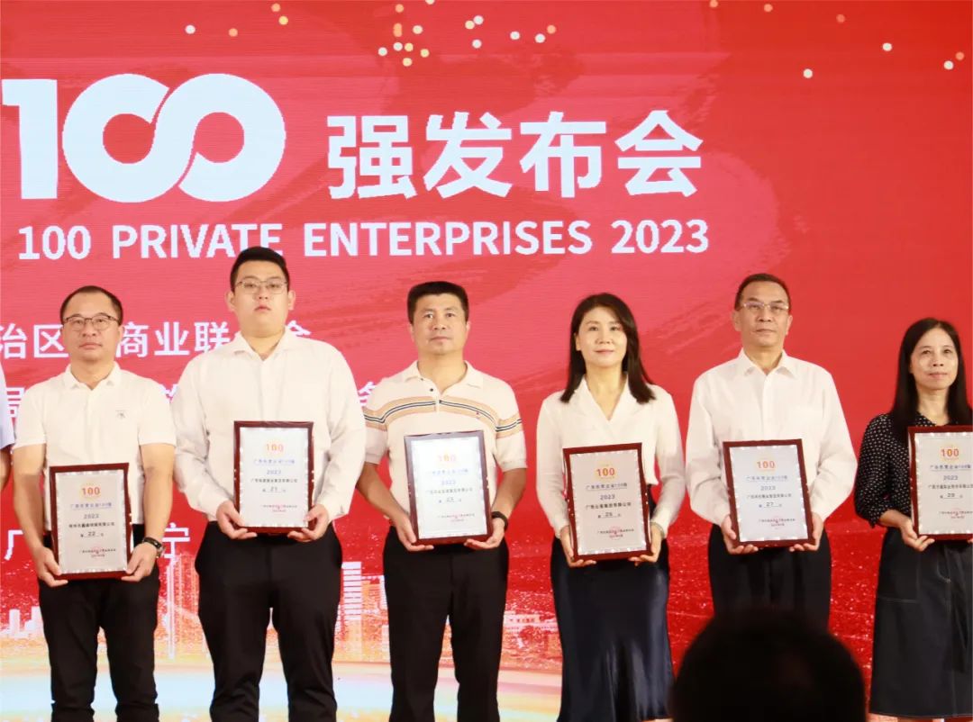 會(huì)議宣讀了2023年廣西企業(yè)100強(qiáng)榜單及調(diào)研分析報(bào)告。其中,廣西華業(yè)投資集團(tuán)有限公司榮列2023廣西民營(yíng)企業(yè)百?gòu)?qiáng)榜第23位。