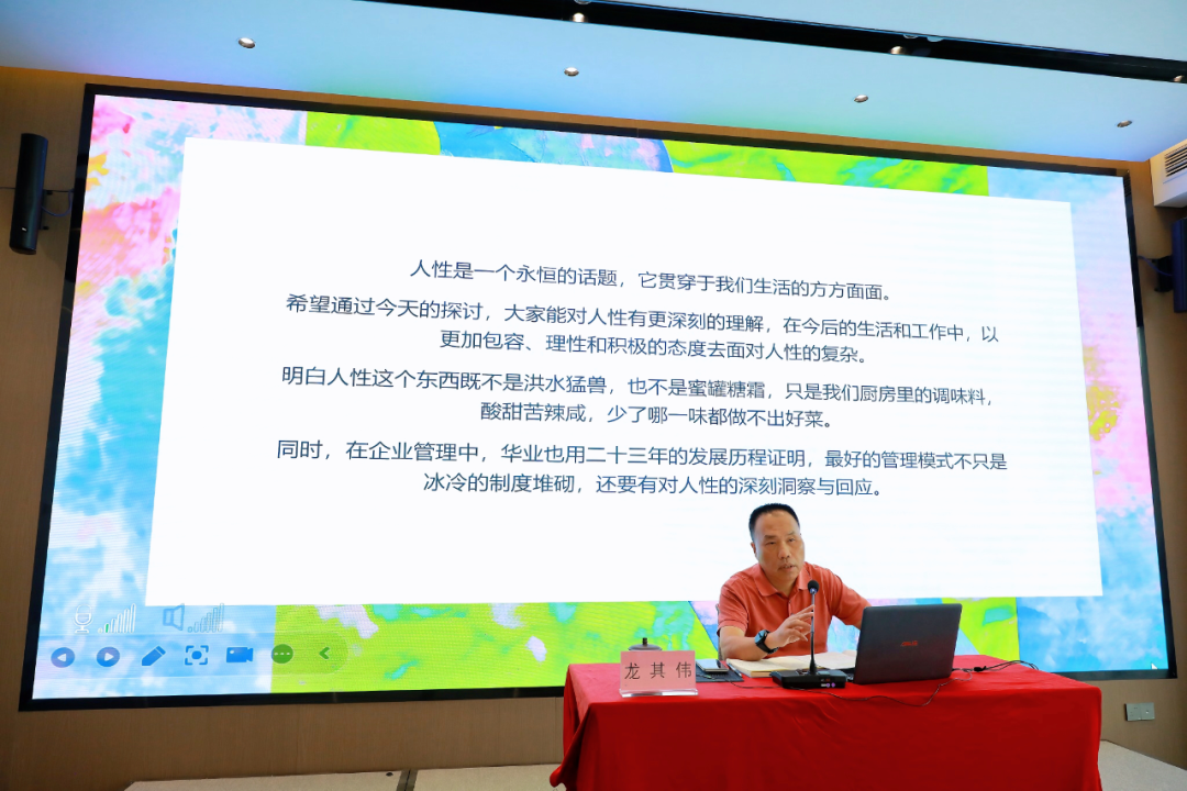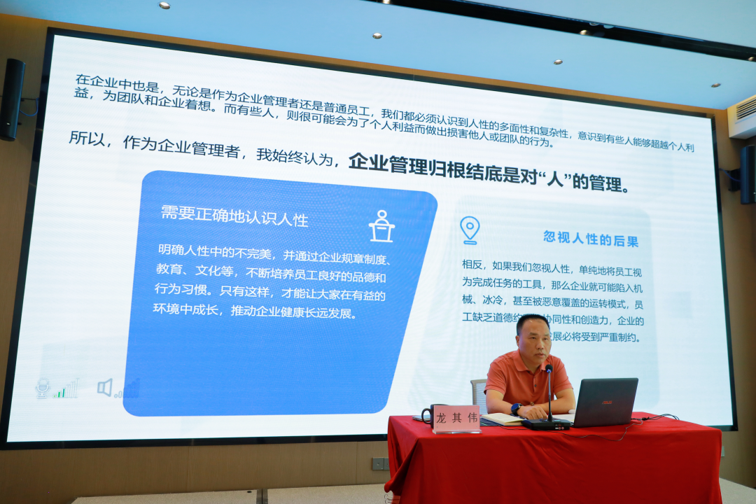 培訓(xùn)中,龍其偉總裁以“人性與企業(yè)管理”為主題,通過分享視頻和生動事例解碼人性本質(zhì),指出人性是生物本能與社會屬性交織的復(fù)合體,既包含趨利避害的生存本能,又蘊(yùn)含向善求真的精神追求。